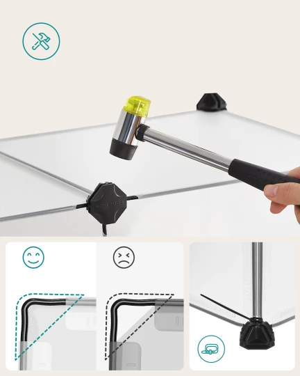 - Aby uniknąć podgryzania paneli, ich wystające elementy powinny znaleźć się na zewnątrz ścianek bądź na dole paneli podłogowych.