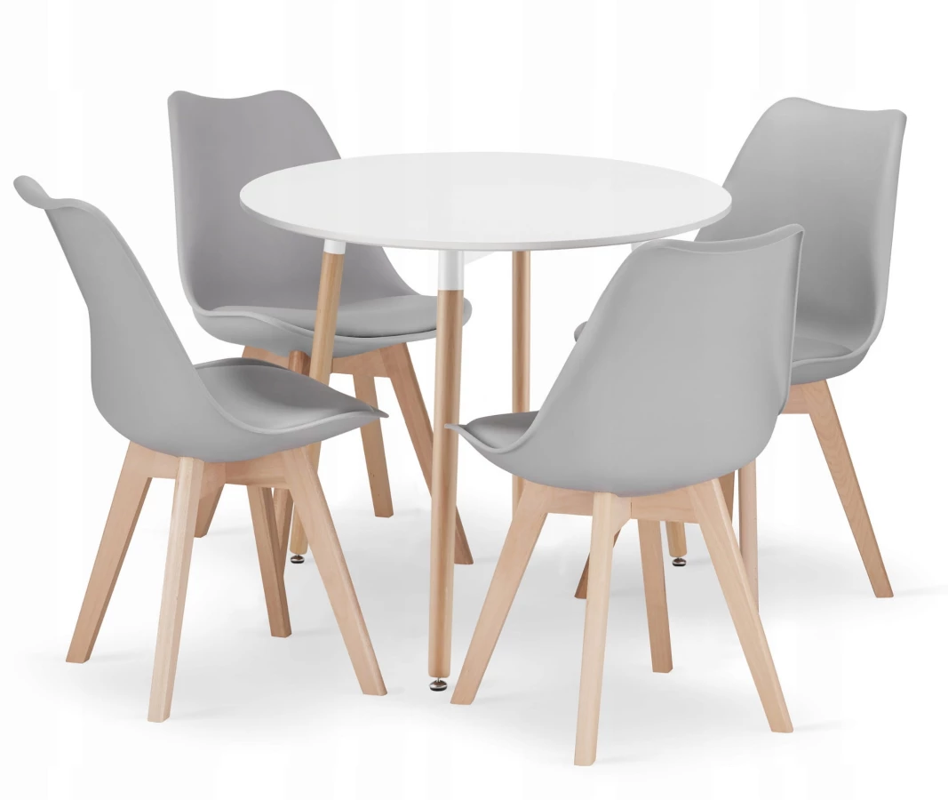 Zestaw stół okrągły KAMI 80 biały + 4 krzesła MARK szare