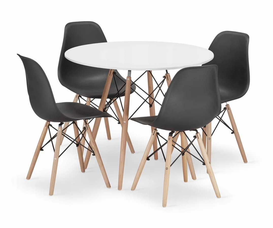 Zestaw stół okrągły TODI 90 biały + 4 krzesła OSAKA czarne